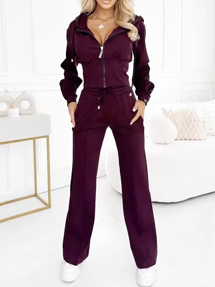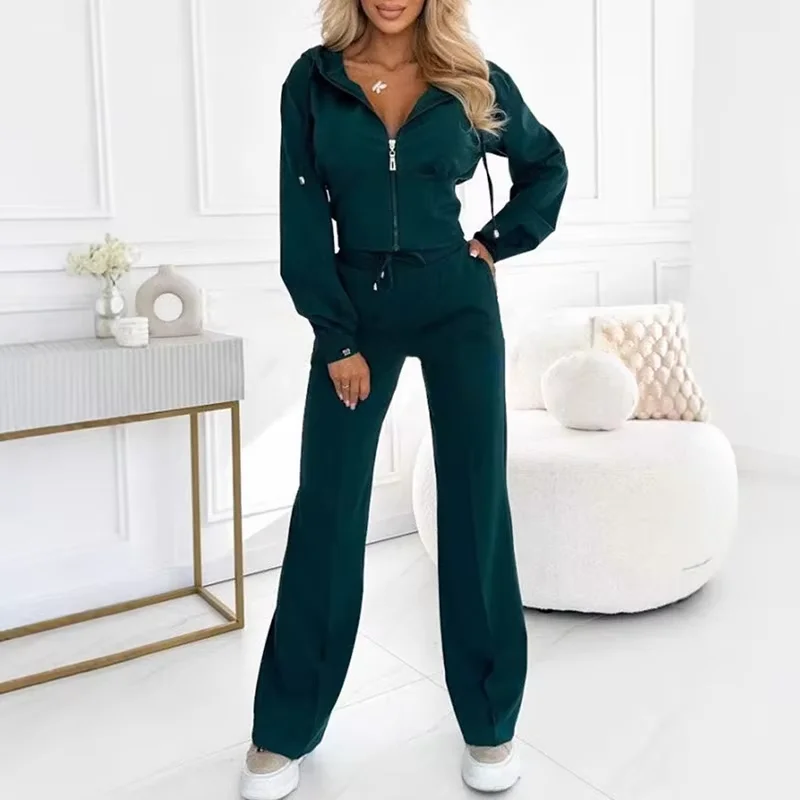 Autumn Casual Solid Sportswear Women Set Fashion Zipper Hooded Sweatshirts Coat & Lace-up Pants Tracksuit New Winter Suit Outfit